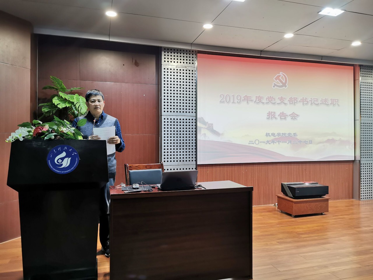 点击:11月27日,机电学院党委组织开展2019年度党支部书记述职报告会,各党支部书记及全体教职工党员参加报告会。报告会由学院党委副书记苏超主持。