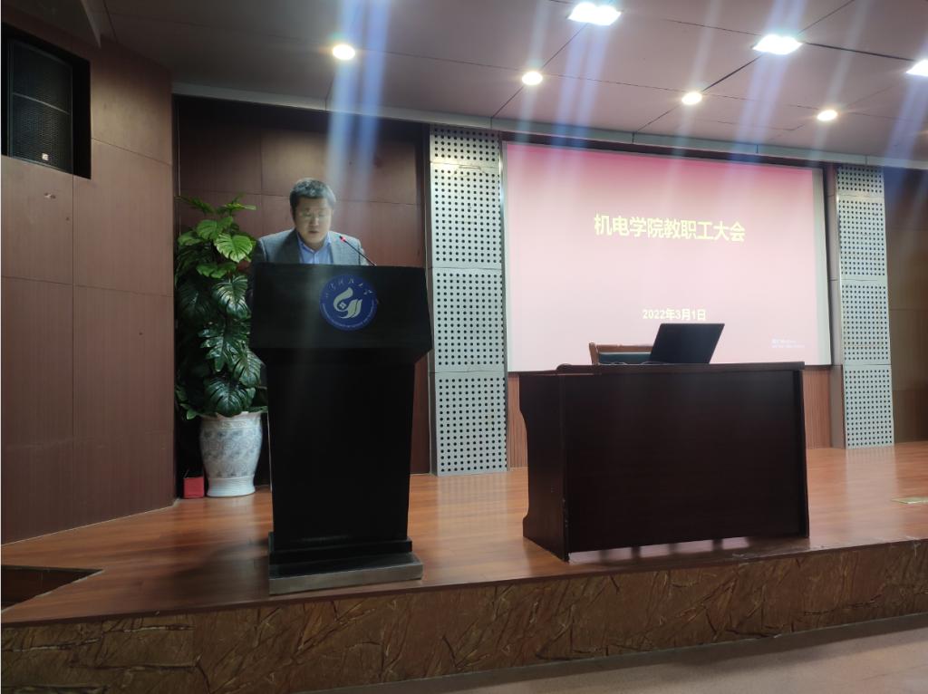 院长张强总结了学院2021年的主要工作,传达了学校2022年工作会议精神,指出了学院发展面临的困难,结合学校2022年工作要点,提出了2022年学院工作的任务和目标,对学科发展、研究方向、筹备产业学院、专业建设、科技奖突破、科研项目与经费、人才引进与培养、加强研究生培养、开放办学等工作进行了具体部署。