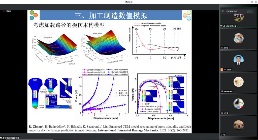 最后,在两位主讲人报告的引导下,与会青年学者就“先进制造中塑性成形损伤本构模型构建难点”“复合材料等新型材料制造本构模型构建突破点”“高非线性对加工特性的影响”“深度学习等在解决非线性引起加工不确定性影响的可能性”等前沿科学问题进行了的讨论。