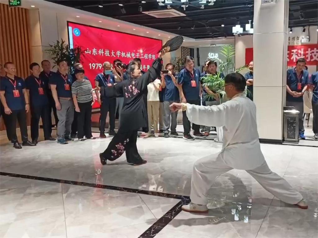 下午,校友们依次参观了学校东门、校史陈列馆、图书馆、机电学院实验室和小平科技创新团队工作室,切身体验学校四十年来的蓬勃发展。晚上,学院在校友之家举办联欢晚会,太极拳、舞剑、歌唱……多才多艺的校友们仿佛回到了青葱岁月,大家一起谈笑风生。