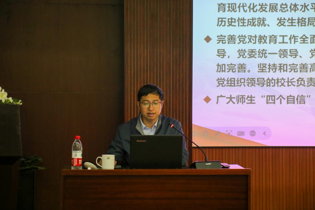 党委常委、副校长阳凡林为联系学院和学生班级宣讲党的二十届三中全会精神