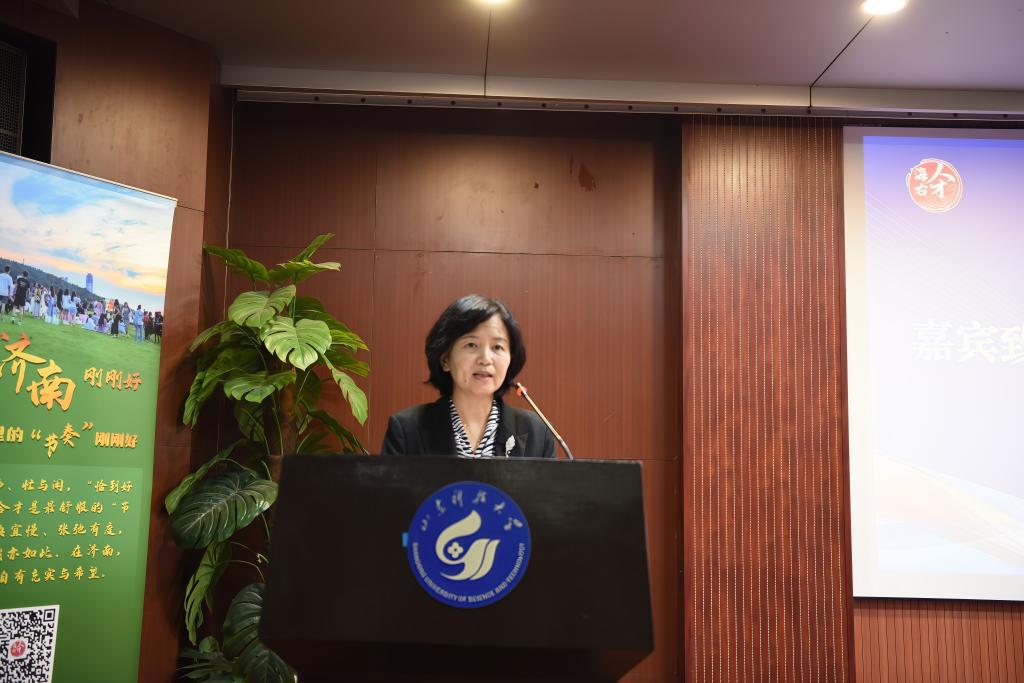 推介会上,郭益灵在致辞中对济南市来校引才表示热烈欢迎。她表示,山东科技大学与济南市保持着良好密切的合作关系,市校双方在人才培养输送、科研成果转化等方面交流紧密,富有成效。济南市近年来在高质量发展、招才引智上的亮眼成效,与学校“服务区域发展”的办学定位高度契合,期待以此次活动为契机,深化校地合作,迈向“人才共育”新阶段。
