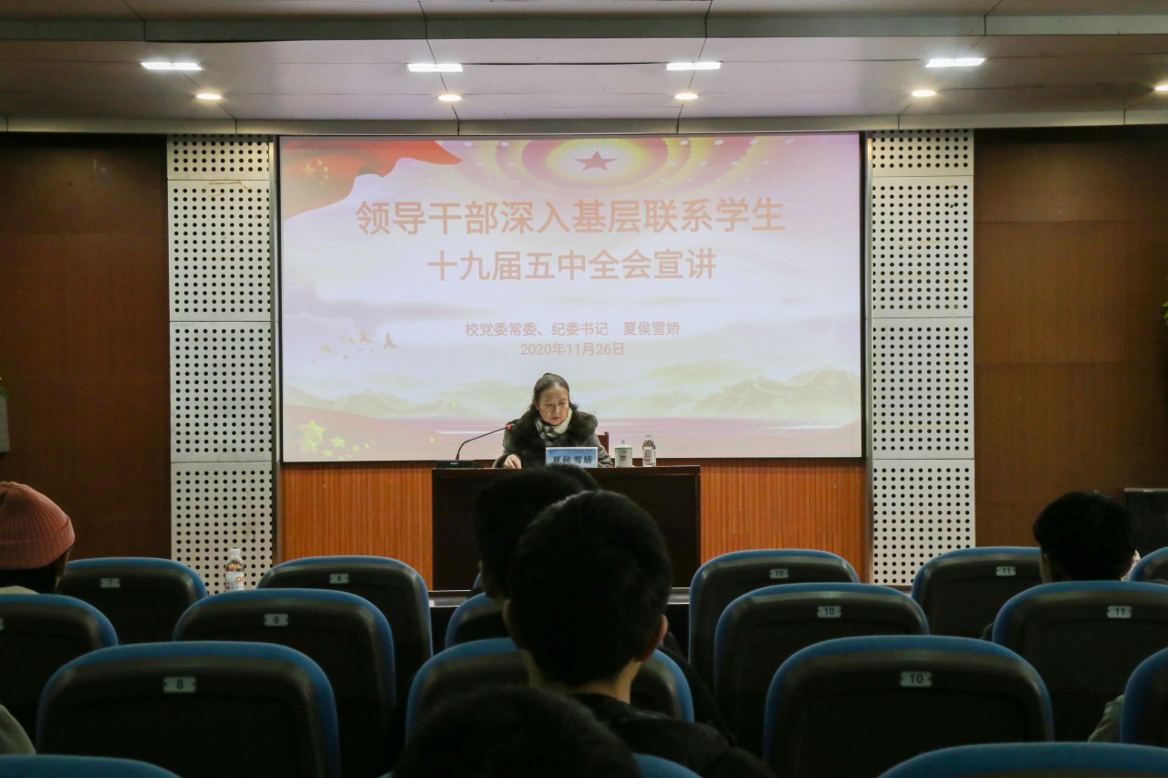 校党委常委、纪委书记夏侯雪娇向联系班级学生宣讲党的十九届五中全会精神