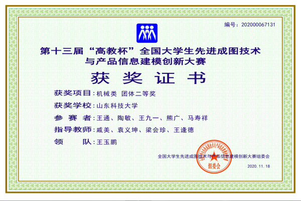 教务处、创新创业学院、机电学院为此次比赛提供了强有力的支持。经过校赛和省赛的选拔,参赛队员积极备战,最终取得优异成绩,充分展现了山东科技大学学生在图学基础知识、尺规绘图、产品信息建模和3D打印等方面的动手与创新能力,全方位提升了参赛学生的综合素质和团队协作精神。(通讯员:赵玉琦 唐延祥)