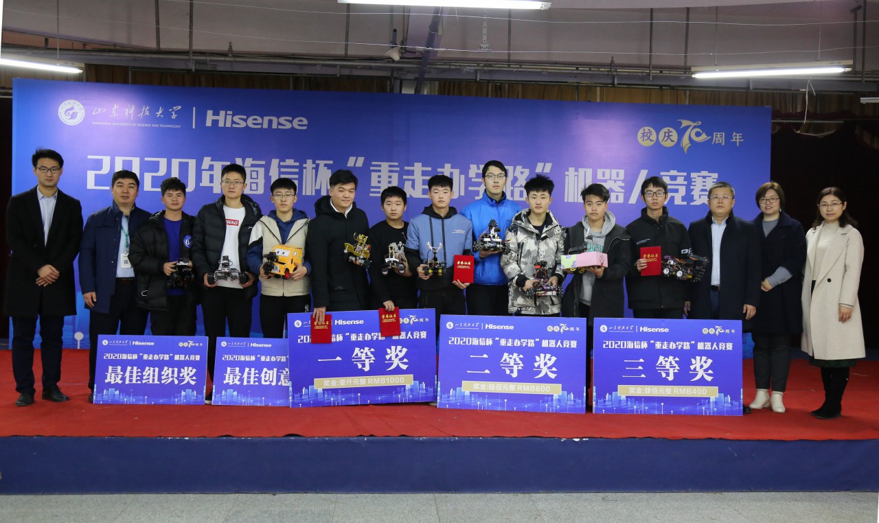 点击:为增强大学生科技实践能力,营造了解校史、爱校荣校的校庆氛围,12月20日上午,由共青团山东科技大学委员会主办、机械电子工程学院承办的海信杯“重走办学路”机器人竞赛,在大学生活动中心一楼报告厅隆重举办。海信视像科技股份有限公司制造中心副总经理安玉江一行、校团委副书记马鹤、机电学院党委副书记陈猛出席比赛现场,学院团委书记樊玉华主持开幕式。