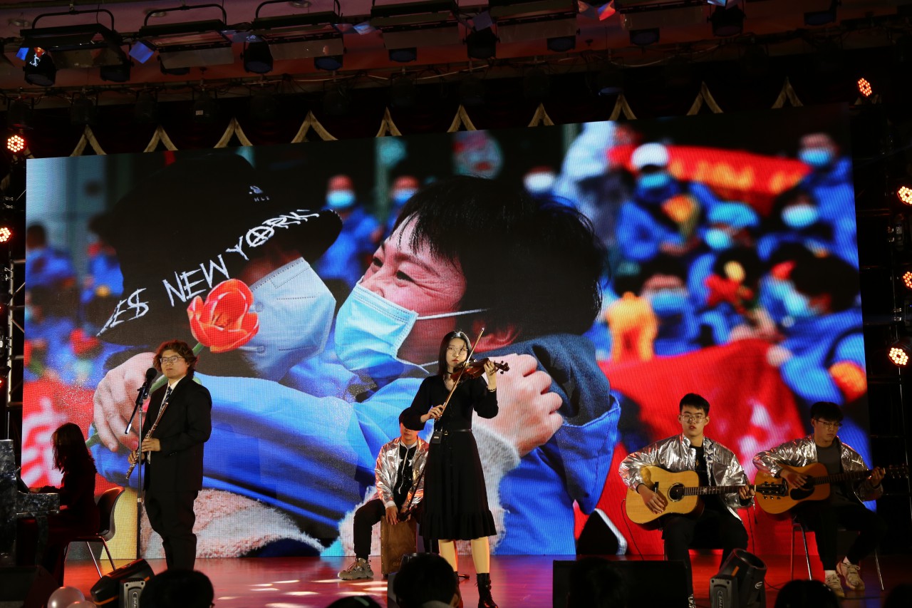 红色历史故事舞台剧《不朽丰碑》带领同学们回望那段峥嵘岁月,领略革命前辈们那难凉的热血和保家卫国的豪情;聆听器乐表演《“疫”路有你》,同学们共同回望2020年的艰辛旅途,感受疫情时人民的团结一致;气势恢宏的古典舞《那年红雪冬青》让同学们沉浸其中,感受着青春的魅力与古典的风情;由崔静怡老师、杨治宽老师为同学们带来的歌曲《岁月神偷》将场内气氛再次点燃,两位老师的倾情献唱赢得同学们的热烈的欢呼声与掌声,让同学们见到了他们“可爱”的一面;兼导们用歌声寄语大一的同学们,一首充满力量的《奔跑》,鼓励同学们新一年的征程中全力以赴;幽默风趣的相声《父亲的生活》与传达着社会正能量的小品《钱去哪儿了》恰到好处的包袱引得同学们开怀大笑。歌曲串烧《等花开,等春归》、《曲中人》、舞蹈串烧《dancer》与走秀《所念皆星河》更是展现了机电学子朝气蓬勃、积极向上的精神风貌。最后一首《我乘着风飞过来》以充满着青春活力的旋律为本次晚会画上圆满的句号。