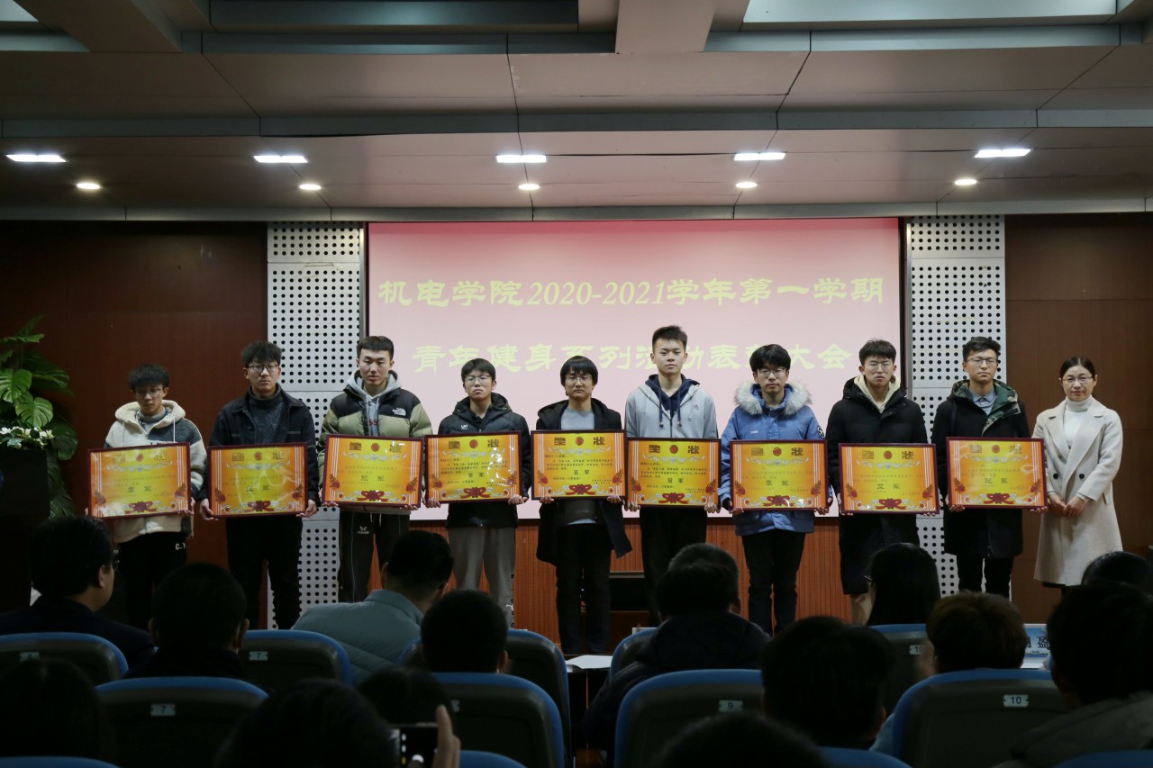 点击:为了表彰和鼓励在青年健身节系列活动中表现优异的队伍,提高同学们对体育活动的热情,12月22日下午,机电学院在学院楼报告厅召开青年健身节表彰大会。机电学院党委副书记、副院长陈猛,团委书记樊玉华,全体团委老师参加,杨治宽担任主持人。