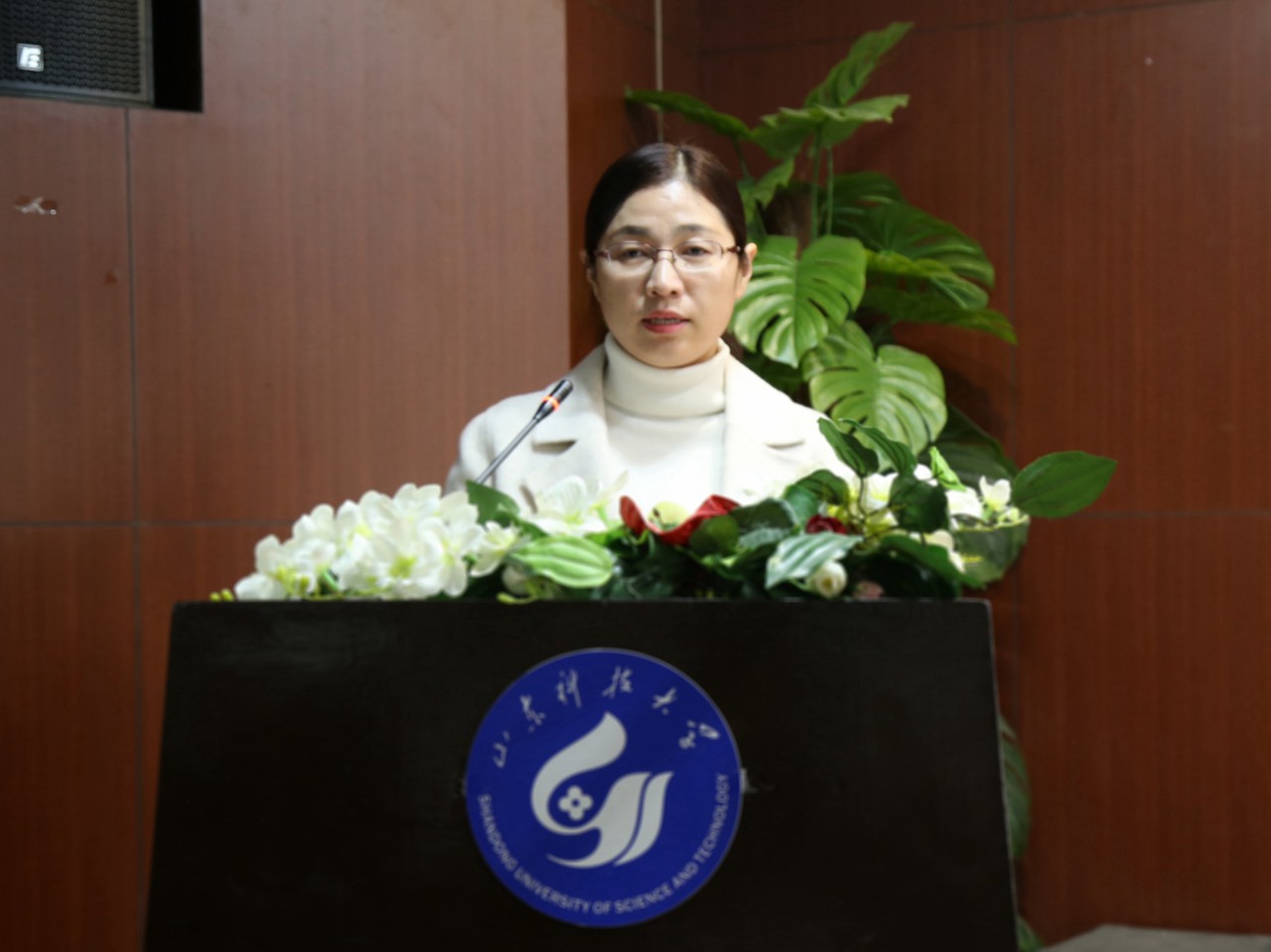 樊玉华宣读《关于表彰山东科技大学机电学院2020年“青春飞扬,逐梦扬威”青年健身节系列活动优秀队伍的决定》,表彰了在新生篮球赛、新生足球赛、冬季越野赛等六个体育赛事中获奖的40个优秀队伍,陈猛、樊玉华、崔静怡分别为获奖队伍颁发荣誉奖状。