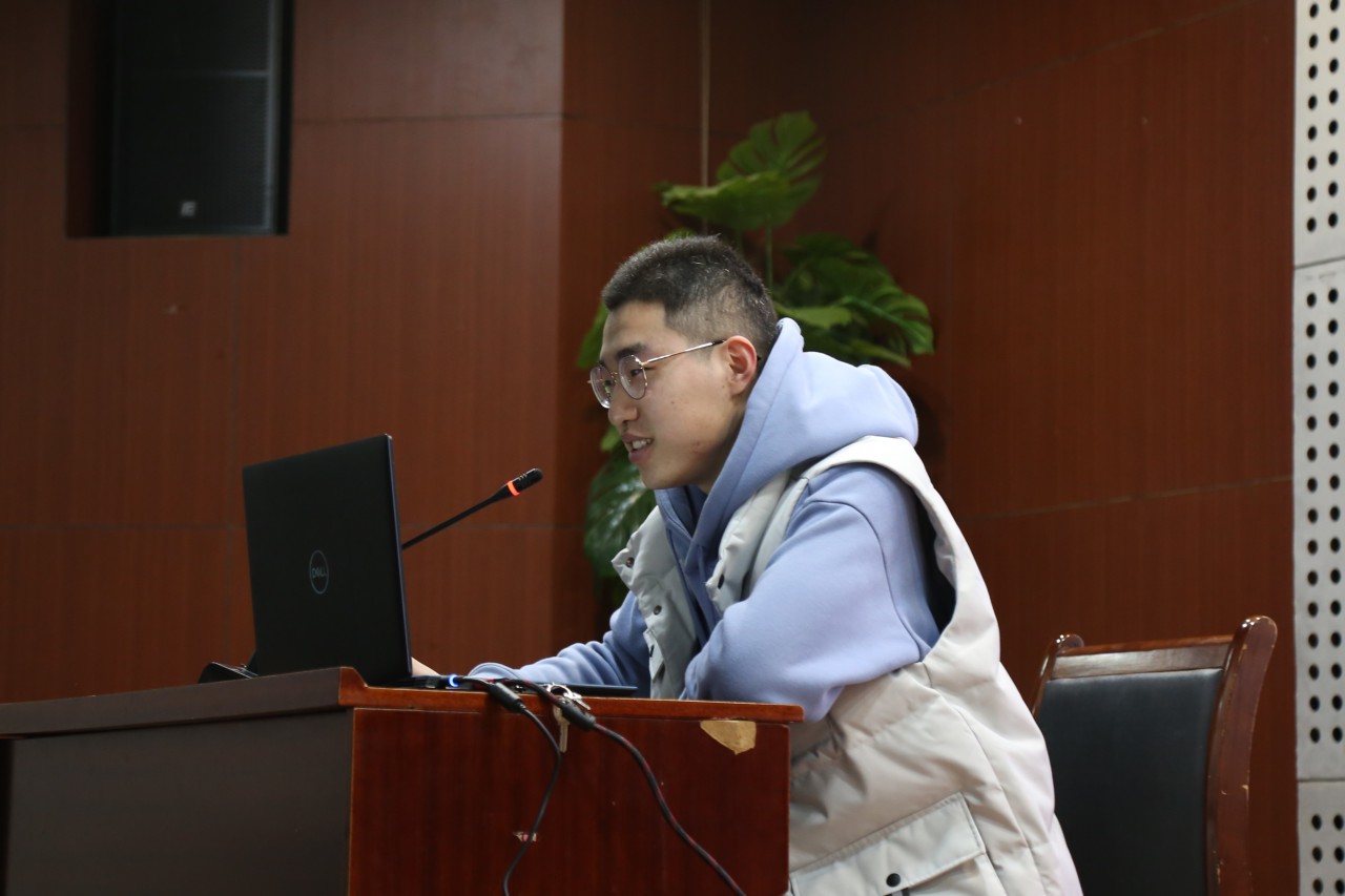 刘晨晖,曾获全国大学生采矿工实践作品大赛国家三等奖等国家级奖项两项,山东省机电产品设计大赛一等奖、山东省智能控制大赛一等奖等省级奖项十余项,具有丰富的科创比赛经验与动手实践能力。课上,刘晨晖从“项目从何而来”、“如何发展项目”及“如何准备比赛”三个方面出发,结合自身比赛经历,详细地介绍了各类科创比赛的具体要求和注意事项。他着重讲述了参赛作品说明书的撰写要求及创作技巧,强调了格式和内容的重要性。在团队建设方面,刘晨晖提醒同学们根据需求寻找可靠的队员,强调“兵不在多而在精”。最后,刘晨晖对经费报销、比赛奖励等问题简要回答。