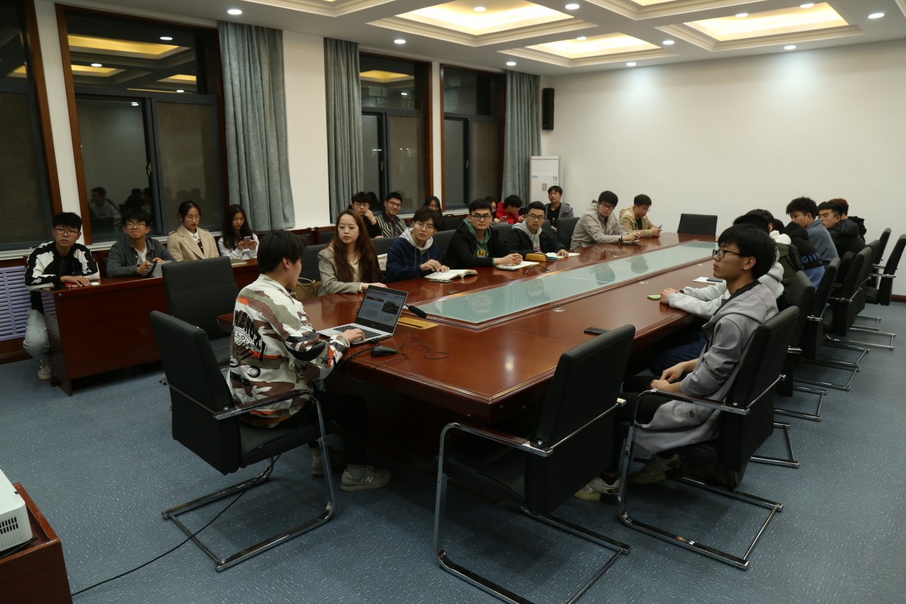 吴极则通过一个个科大故事,为团支书们讲述了山东科技大学与机电学院的历史。他先是从科大的建校历史讲起,从洪山煤炭工业学校到山东煤矿学院再到山东矿业学院,直到如今的山东科技大学一幅崎岖而又壮丽的校史画卷缓缓铺开,映入眼帘。随后,吴极又为团支书讲述了五位山科脊梁的故事:两院院士实用矿山压力理论学派带头人—宋振骐,爆破大王—胡峰,科大缔造者—王春秋、曹书刚,机器鸟大师—苏学成,“山科正是因为这些脊梁的奉献,才能够不断地前进发展,成为学术一流的高校。”最后,吴极同学谈到科大未来,他说:“科大未来将由我们来铸造,让我们砥砺前行,共同书写科大光辉的未来!”