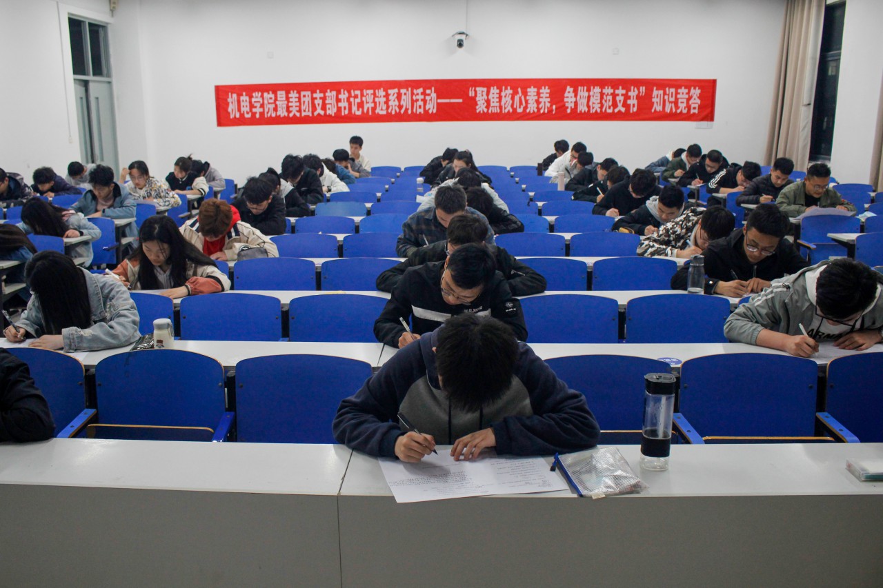 为迎接中国共产党建党100周年,贯彻落实习近平总书记关于青年工作重要思想,推进青年马克思主义者培养工程,3月31日晚,机电学院在J14-211举办最美团支部书记评选系列活动之“聚焦核心素养,争做模范支书”知识竞答活动。