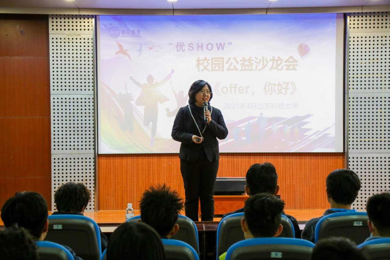 讲座中,徐莹向与会同学介绍了职业锚理论,通过SWOT分析法分析职业倾向定位和自我优势,带领同学们了解了企业筛选简历的标准及方法,以便在简历筛选过程中崭露头角。随后,徐莹介绍了无领导小组面试的举止仪表、面试题型及答题方法,现场随机选取了八位同学模拟无领导小组面试,全方位实战演练,同学们结合徐老师的讲解,积极思考,畅所欲言,从各个方面发表自己的观点,阐述立场,充分锻炼辩论能力与面试技巧。