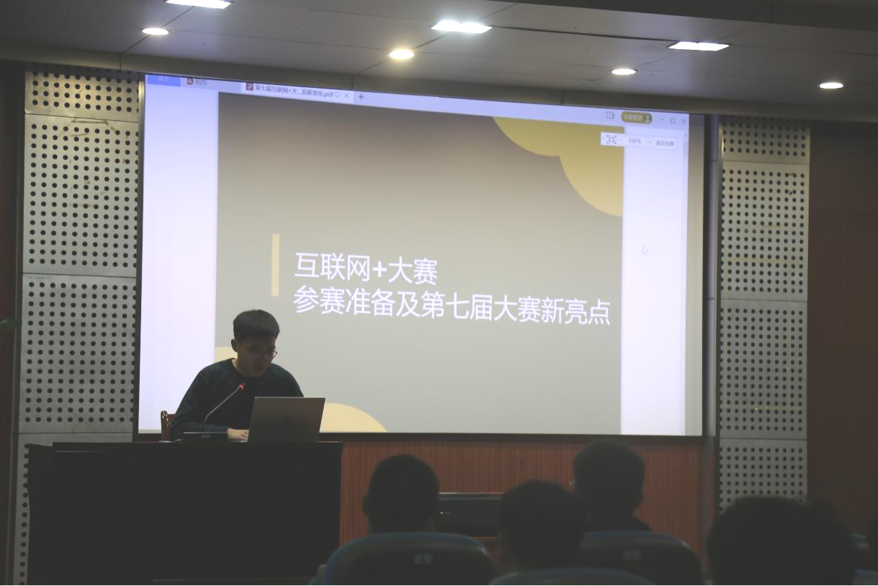 随后,唐延祥同学对参赛技巧进行了详细的讲解。首先,在撰写商业计划书要注意真实性和有效性,不能存在团队虚构、偷换概念等基性问题,在产品创新和内容展示方面做到别具一格、引人注目。其次,在答辩过程中要把握时间问题,逻辑清晰、语言流畅,本着实事求的原则与认真负责的态度,坦然镇定地回答评委老师提出的问题,虚心接受所给出的建议。最后,通过对历年优秀作品的介绍,提醒同学PPT的制作要做到简洁凝练、图文并茂。