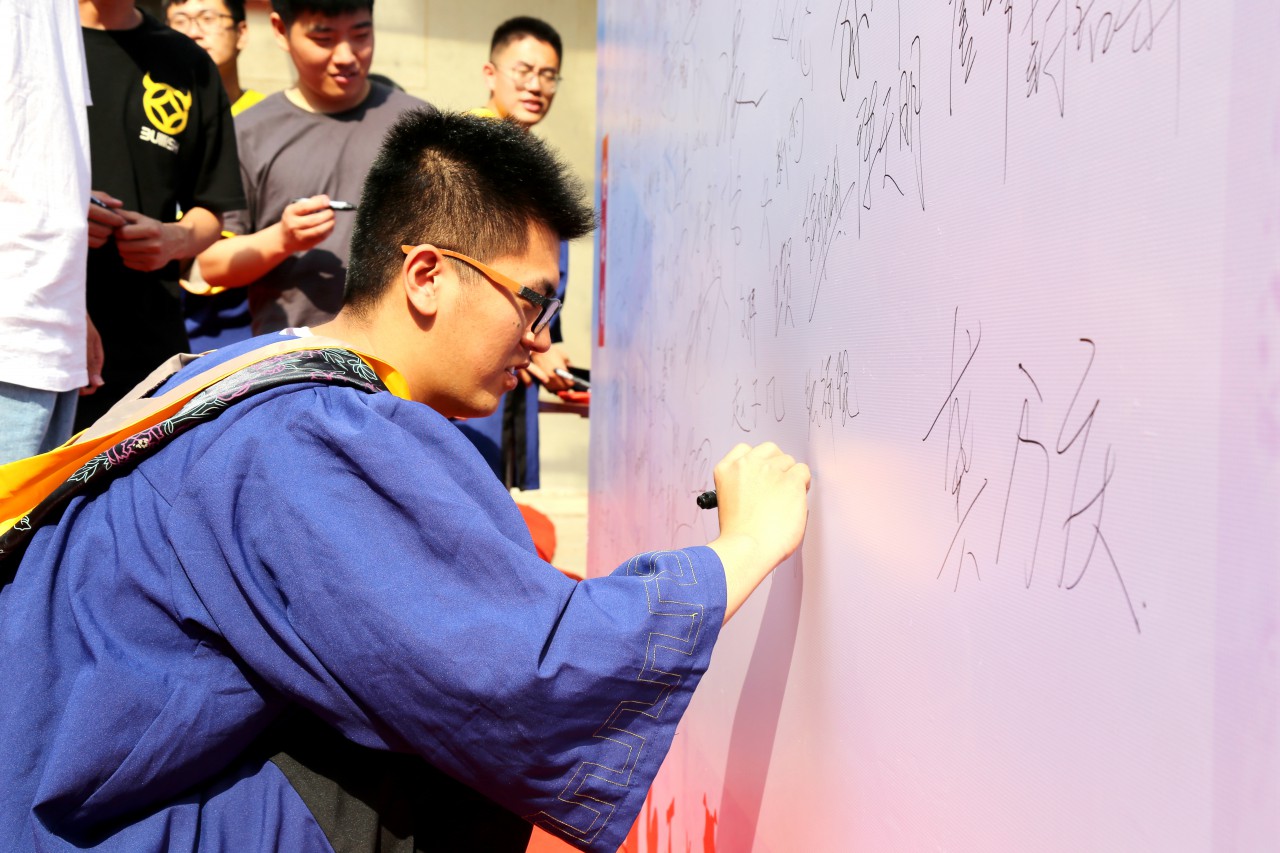 犹记初遇秋风中,忽而相别南风里。在仲夏的阳光下,2021届毕业生们在签名墙上写下自己的姓名,书写对母校的不舍与祝福,与领导、老师、同学们合影留念,鲜花、笑容、掌声定格在了这个弥足珍贵的六月。