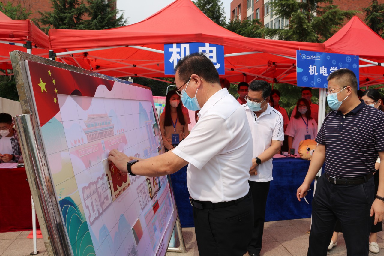 期间,校党委书记罗公利与各机关部门负责人代表莅临机电学院迎新报到点,视察学院迎新准备情况,并体验学院为2021级新生制作的校庆拼图。