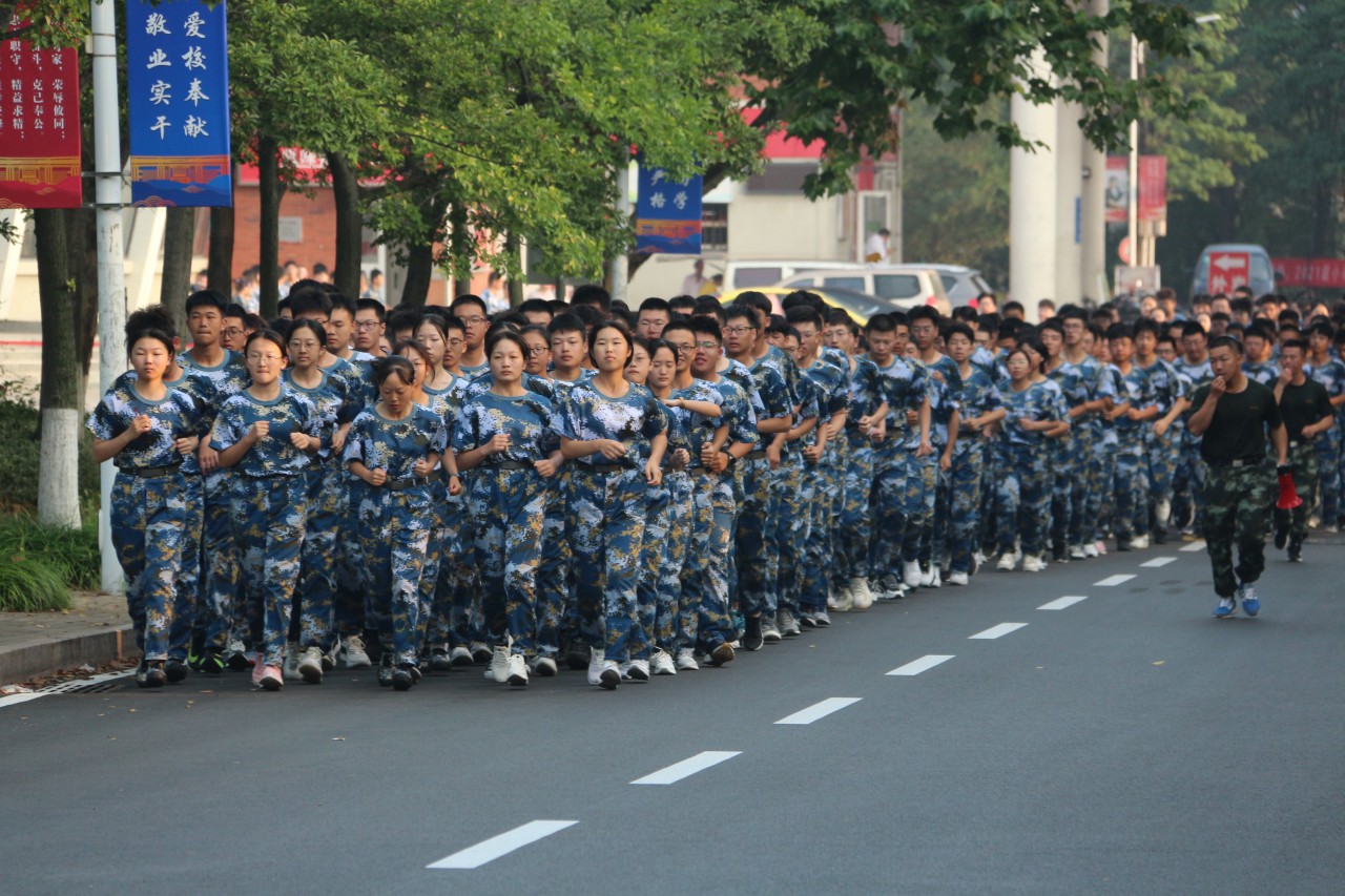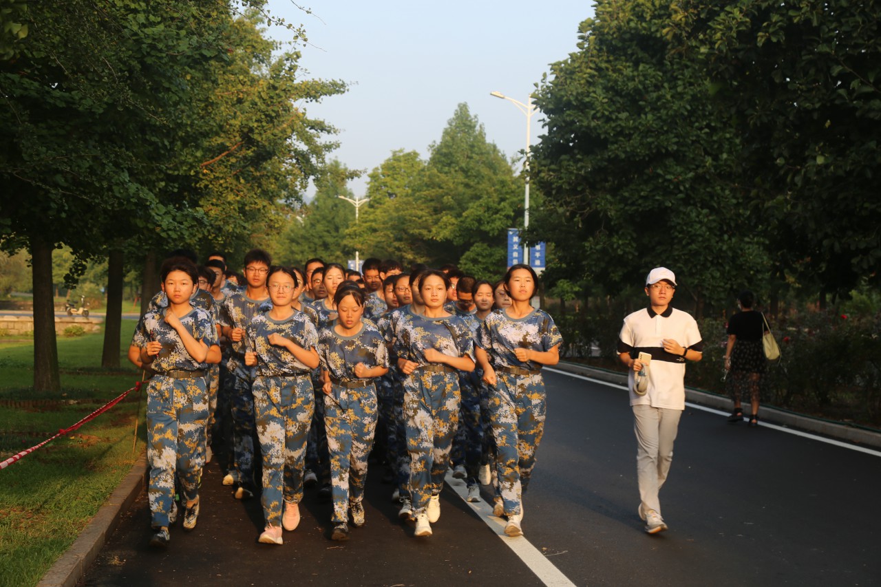 早上六点,2021级全体新生在钟楼广场集结完毕。热身完毕后,随着一声“跑步走”,晨跑正式开始,在新生辅导员罗雨婷、教官、兼职辅导员的带领下,同学们从钟楼广场一路向南,途径J3教学楼、J1教学楼、J14教学楼,最后返回钟楼广场。早训队伍浩浩荡荡地奔跑在校园里,响亮的口号打破了早晨的安静。同学们随着教官“一二一”的口令迈动统一的步伐,动作整齐,排列井然。他们每个人目光坚定,斗志昂扬,展现着军人的威严和青春的活力。