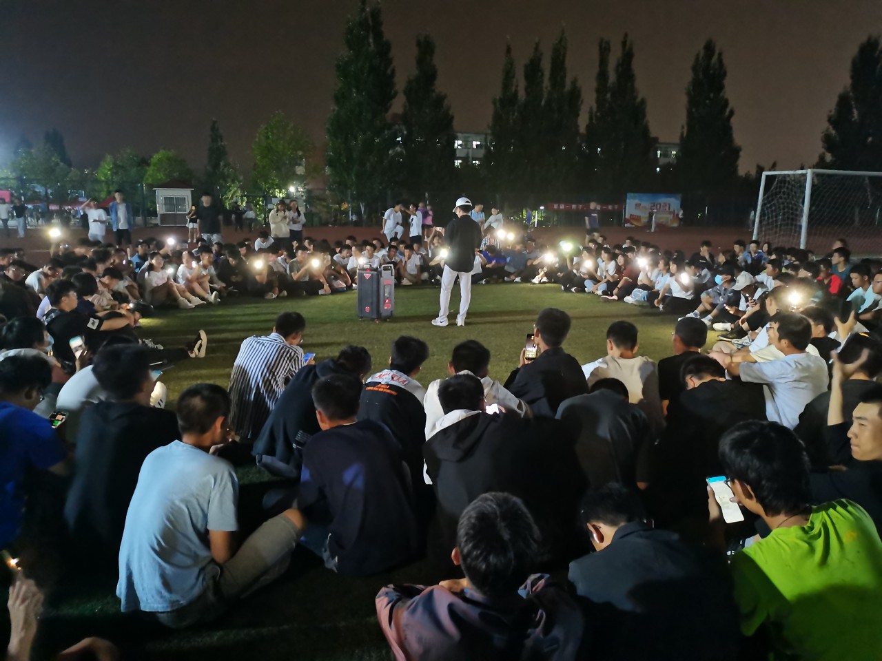 操场上,大家席地而坐围成一圈,活动以每个专业班级的歌舞表演为主,风格多样,有忧郁轻缓的《后来》,也有坚韧感人的《平凡之路》。机设21-1班李雨航为同学们演唱了流行音乐《7%》,氛围轻松甜蜜,同学们纷纷打开手电筒,随着音乐挥舞光亮,轻轻伴唱。机电学院大艺团带来的街舞表演将整个活动推向高潮,掌声和欢呼声此起彼伏,汇成一片热情四溢的海洋。最后,联欢活动在2021级兼导徐子昂演唱的一首《虎口脱险》中落下帷幕。同学们纷纷表示:“歌声虽然停止了,但心中的温暖从未消散。”