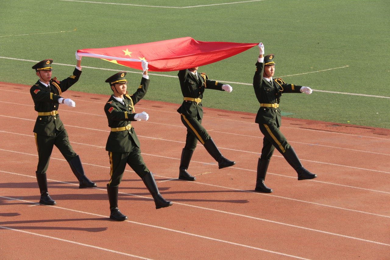 绿茵操场,喧腾鼎沸,运动会拉开帷幕。国旗班英姿卓越,花束队、彩旗队和各方队步伐整齐,精神抖擞,昂首阔步走过主席台,展现了机电学子自强不息、顽强拼搏的精神风貌。陈猛为开幕式致辞,裁判员代表杨治宽、运动员代表田涵硕分别发言,郑重宣誓。樊玉华宣布运动会开幕。