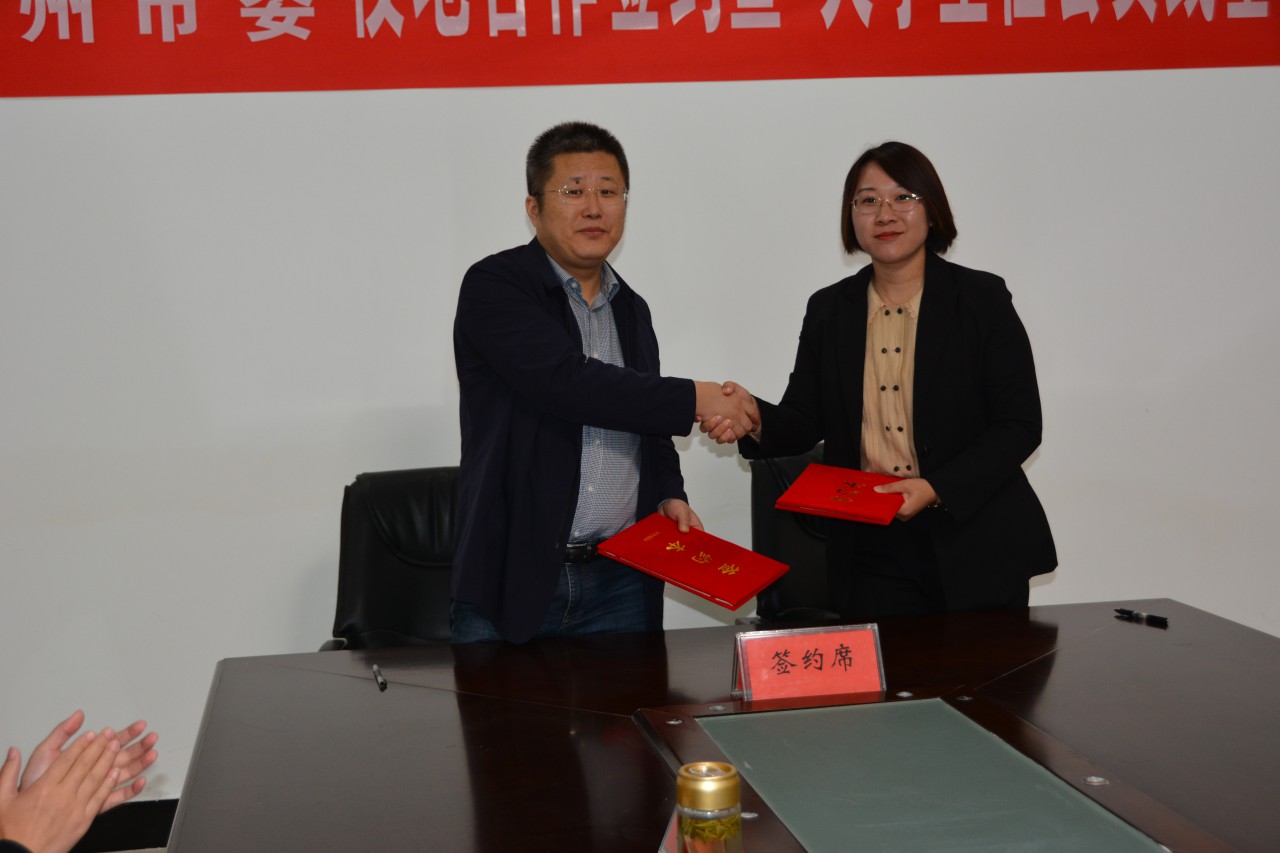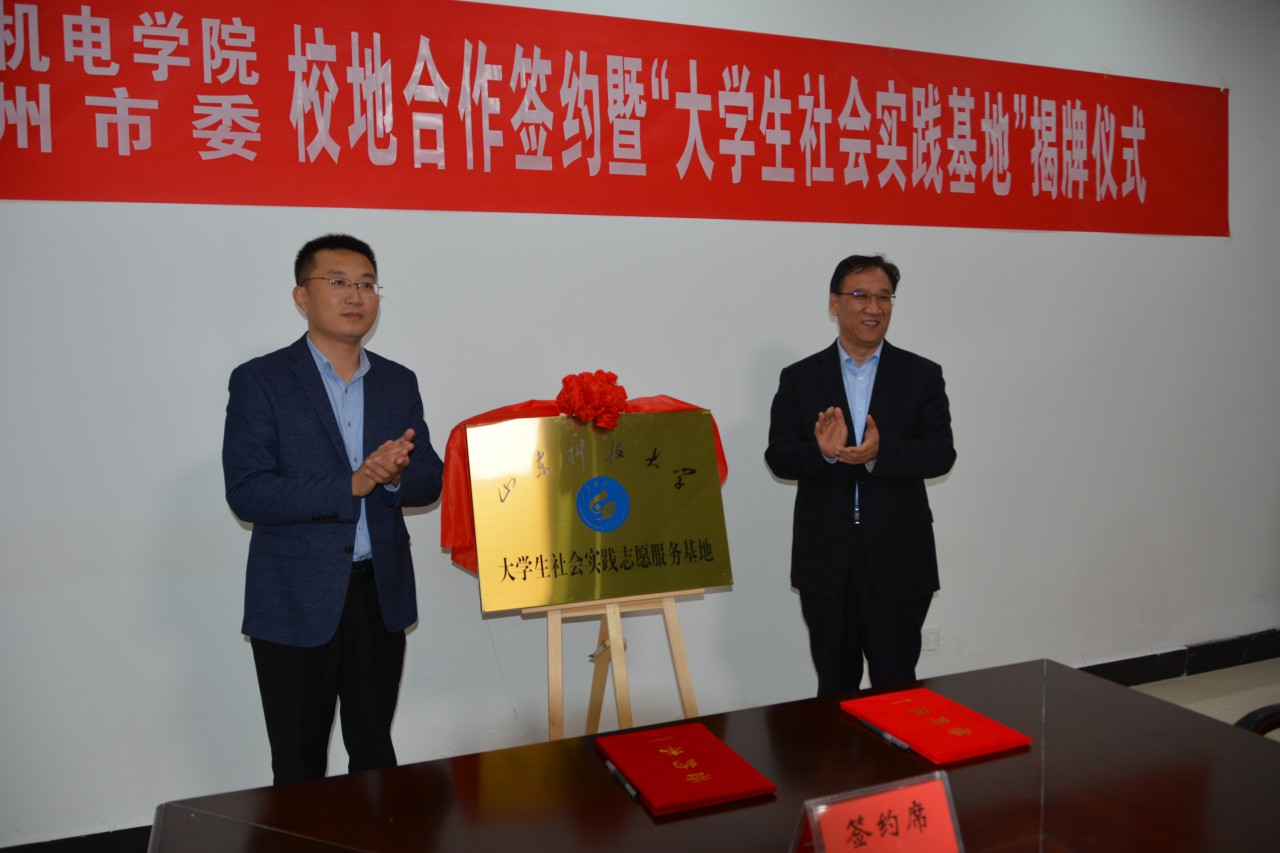 仪式上,机电学院党委副书记、副院长陈猛与滕州团市委书记赵素贤代表双方签订校地合作协议书。