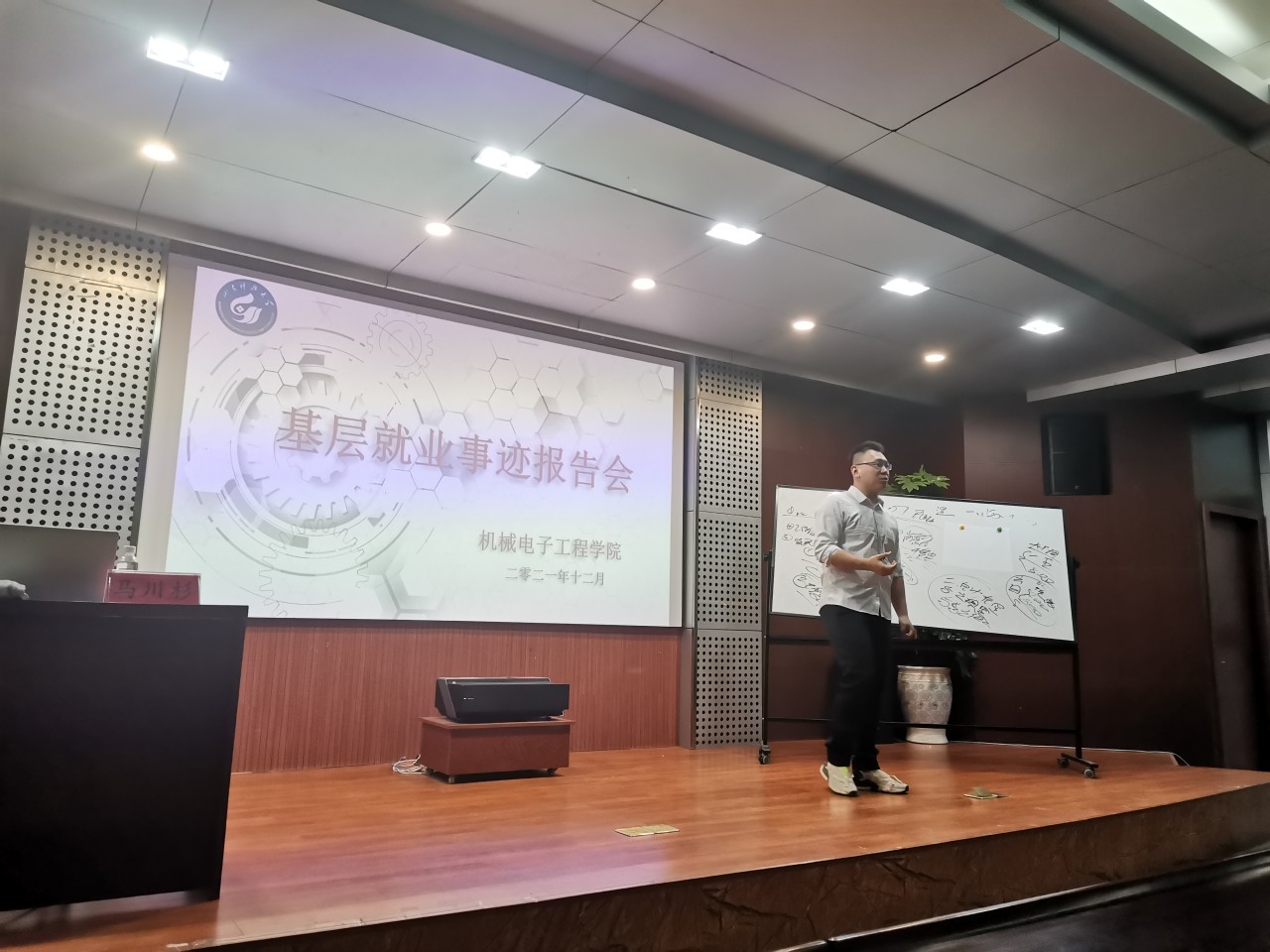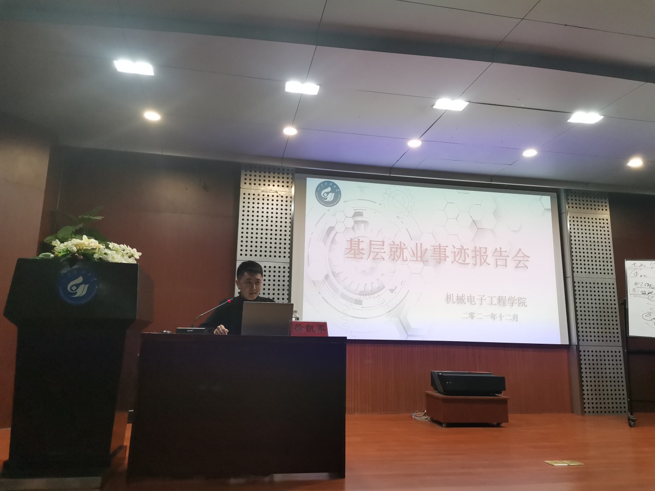 为广泛宣传基层就业毕业生的先进事迹和优秀品质,积极营造“到基层去、到祖国最需要的地方去”建功立业、成长成才的良好氛围,124日下午,机电学院在学院楼报告厅举办基层就业事迹报告会,机电学院材料成型及控制工程2019届校友马川杉、机械电子工程专业2019届校友徐凯军作事迹报告。机电学院学工办主任樊玉华出席报告会,报告会由辅导员孟凡宝主持。