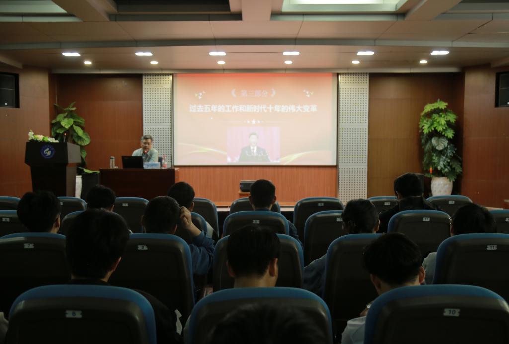 李双立书记强调要深刻领会过去5年工作和新时代10年的伟大变革,“两个确立”是党在新时代取得的重大政治成果,“六个坚持”说明中国化时代化的马克思主义行。他还重点指出了教育的基础性、战略性支撑地位,感叹新时代10年来教育事业取得的巨大成就。最后,他引用习近平总书记对青年的寄语,鼓励青年学子“青年强,则国家强”,要了解国情,深入社会,提高思想政治悟性和实践创新能力。