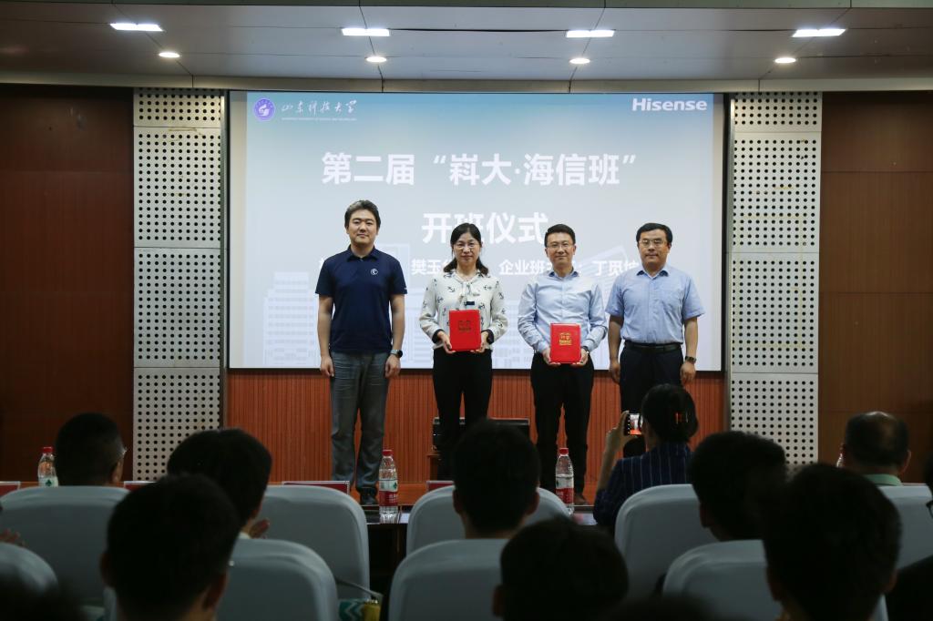 据悉,学校与青岛海信集团有限公司共同组建的“嵙大·海信班”首批学员来自机电学院、能源学院、安全学院等5个学院,共35名学生。第二届“嵙大·海信班”的研究生学员来自机电学院、能源学院和信息与通信工程,共10人;本科学员来自机电学院、能源学院、安全学院、自动化学院和电信学院,共34人。(通讯员:赵明月、郭雨涛 摄影:李亚迪、赵翠翠)
