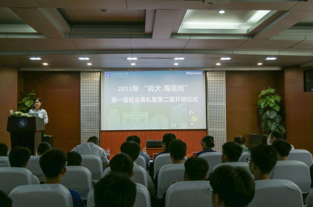 王荣超致辞表示,“嵙大·海信班”的持续开展是山东科技大学进一步推进产教融合、加快建设双一流高校的有力支撑,旨在培养复合型、创新型人才,全力打造高水平的校企合作发展模式,以助推新旧动能转换重大工程为契机,积极探索校企合作的新模式,打造校企合作新样板,实现学校、企业、学生和社会的互利多赢。他期望,山科学子秉承 “惟真求新”的校训,珍惜青春年华,勤奋学习、刻苦钻研、锻炼本领、学会感恩,坚持科技自立自强,不断提升服务国家、服务民族、服务企业发展的过硬本领,以优异的成绩回报母校、回报企业、回报社会。