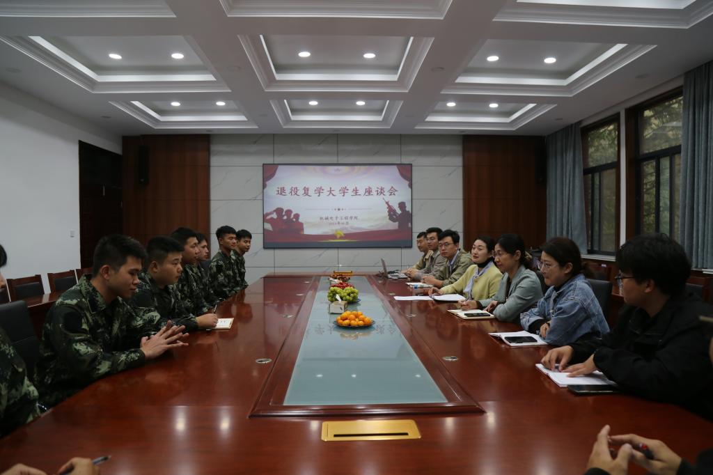 点击:为深入了解退役复学大学生返校后的学习、思想以及生活等方面的情况,扎实做好退役复学学生各项工作,10月18日,机电学院于J8-209会议室举办退役复学大学生座谈会,机电学院党委副书记兼副院长刘梅月、机电学院学工办主任樊玉华以及机电学院辅导员老师出席座谈会,活动由机电学院辅导员宋阔主持。