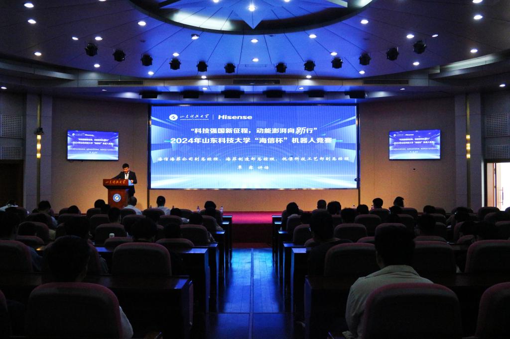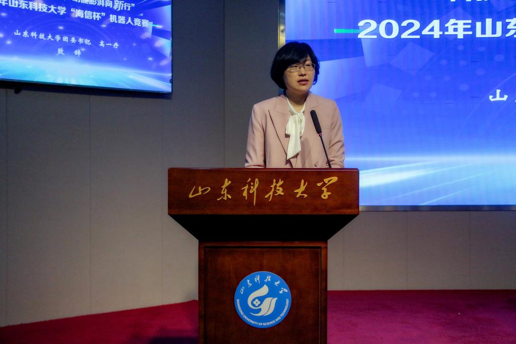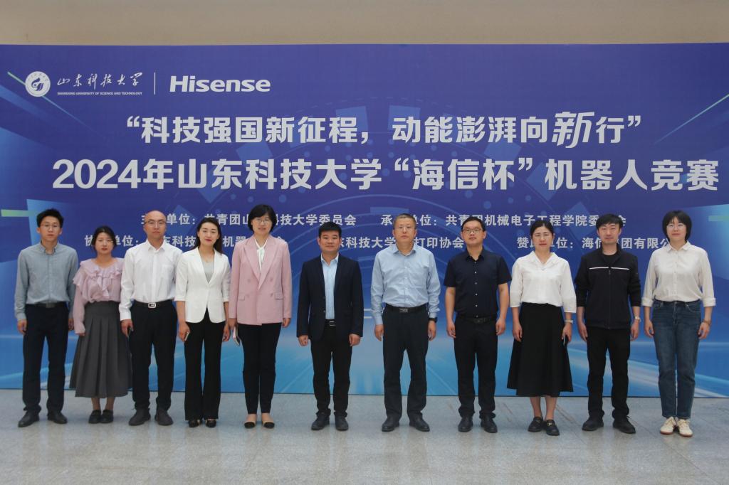 点击:为进一步激发我校大学生创新创造力,全面提升学生的动手能力和团队协作能力,5月18日上午,由共青团山东科技大学委员会主办、共青团机械电子工程学院委员会承办的“科技强国新征程,动能澎湃向‘新’行”2024年山东科技大学“海信杯”机器人竞赛决赛在逸夫讲堂隆重举办。海信海菲公司副总经理、海菲制造部总经理、视像科技工艺部副总经理覃露,山东科技大学团委书记高一丹,山东科技大学机械电子工程学院党委书记陈猛,山东科技大学团委副书记李雷,视像科技人力资源部招聘经理朱慧颖及机电学院全体团委老师出席比赛现场,学院党委副书记兼副院长刘梅月主持开幕式。