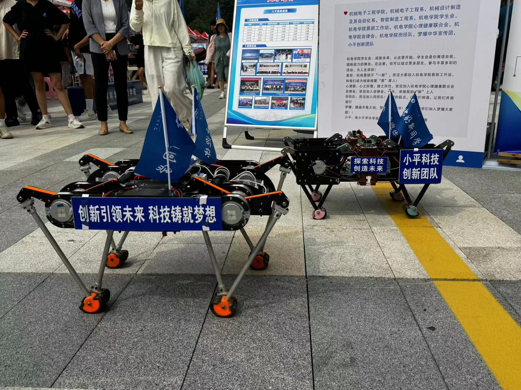 学院迎新点特别设置猜灯谜、飞花令、微信墙合照等互动活动,丰富了报到环节的趣味性和互动性。此外,学院迎新点的科技展示处的机器人更是吸引了众多新生的目光,小平科技创新团队成员们为他们细心讲解,每一部仿生足式机器人的背后都凝结着学长们的心血,在新生的心中悄然种下“科创”的种子。
