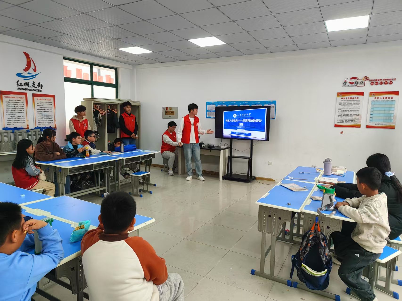 在当今科技飞速发展的时代,培养青少年对科学技术的兴趣与探索精神愈发重要。近日,机电学院学生会与机器人协会组成青年志愿者队伍,由团委老师李一杰带队,先后走进前湾港中路社区、开拓路社区,为社区里的小朋友们精心筹备了一场充满趣味与知识的机器人知识小课堂。
