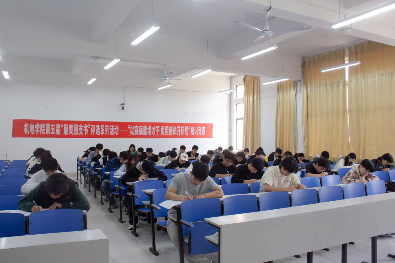 点击:为深入学习习近平新时代中国特色社会主义思想,贯彻落实学校第四次党代会精神,扎实推进基层团组织建设、深度激发基层团组织活力、持续提升基层团干部素养,展现我院团支部书记风采。近日,机电学院在J14-207成功举办了第五届“最美团支书”评选活动第一阶段,此阶段以“以赛励能增才干 勇担使命开新局”为主题,旨在考察团支部书记对党的先进理论及共青团基础知识的掌握程度。机电学院全体基层团支部书记参加。