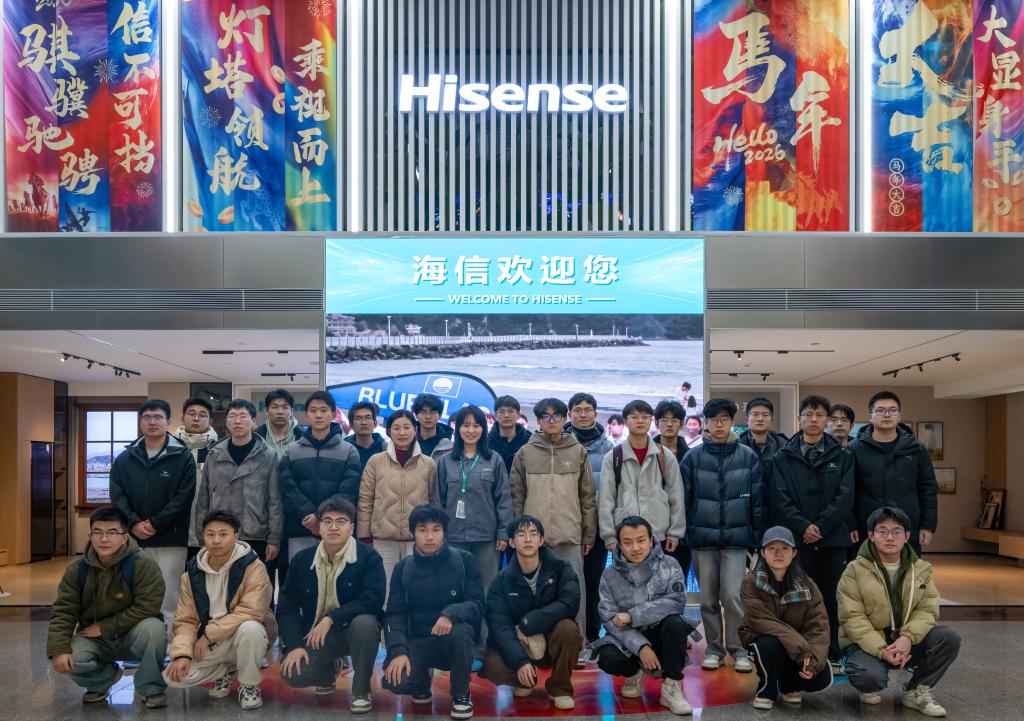 点击:为搭建校企协同育人桥梁,让青年学子近距离感受现代制造业的智能化变革,见证理论知识向实践生产力的转化,1月12日,“嵙大•海信班”学员与信嵙俱乐部成员代表,在海信班校内班主任、机电学院学工办主任樊玉华的带领下,走进海信信息产业园,开启了一场探秘智造前沿、对话未来产业的科技之旅。