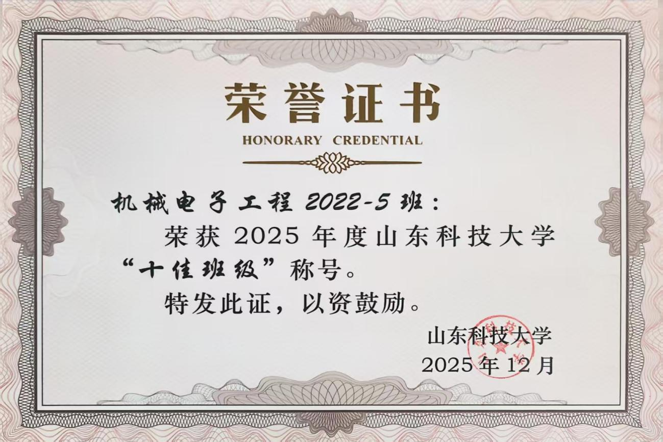 机械电子工程2022-5班获评山东科技大学“十佳班级”