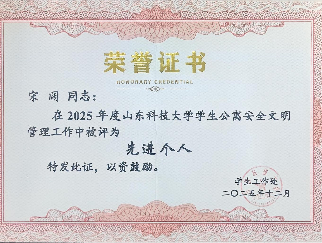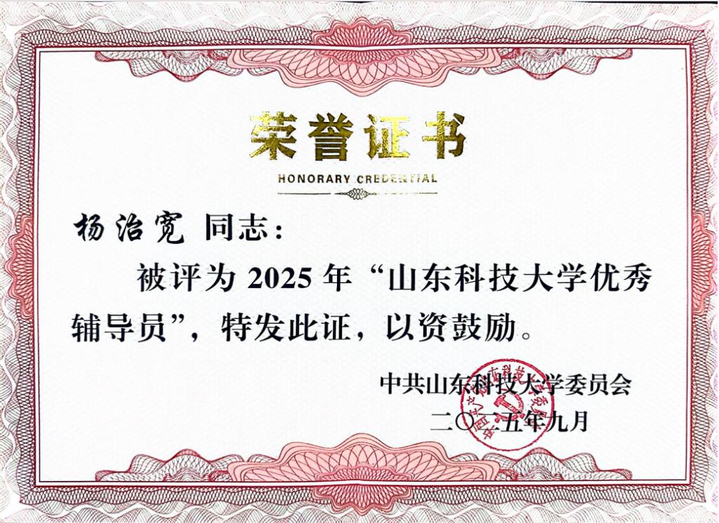石胜仁同学获评山东科技大学“十大优秀学生”荣誉称号