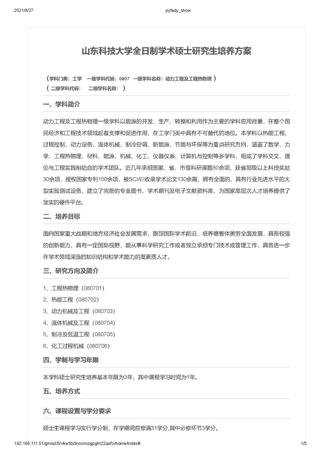 动力工程及工程热物理一级学科硕士学位授权点2021年建设年度报告