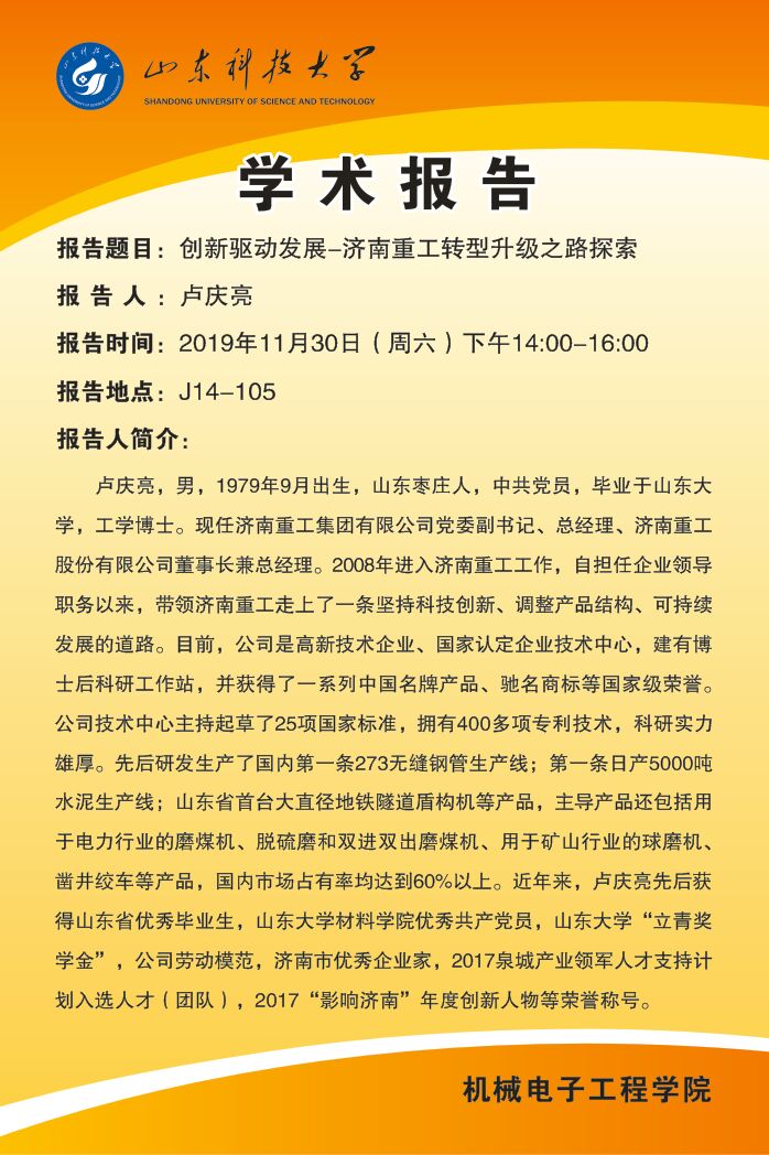 学术报告:创新驱动发展-济南重工转型升级之路探索